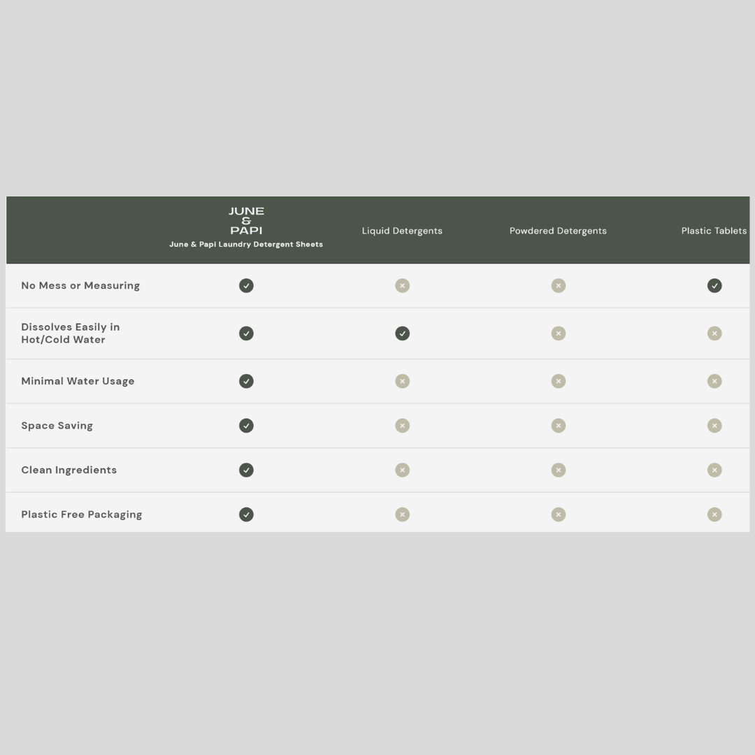 Whether you’re shopping for a sustainable housewarming gift, a thoughtful wellness gift, or an everyday essential with a lower environmental impact, June & Papi laundry detergent sheets are a smart, stylish choice.