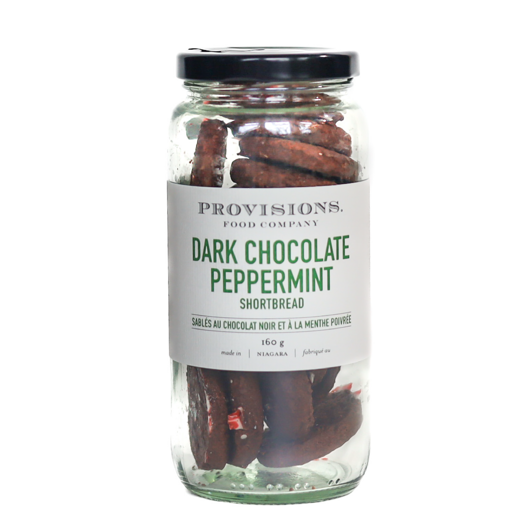 INGREDIENTS: Flour, Butter, Cane sugar, Peppermint candy (sugars [sugar, glucose syrup], natural flavour, allura red, glycerin, canola oil, sunflower lecithin), Cocoa powder, Dark chocolate (unsweetened chocolate, sugar, cocoa powder, soy lecithin, natural flavour), Sea salt, Natural flavour. • Crafted from creamery butter and great ingredients.