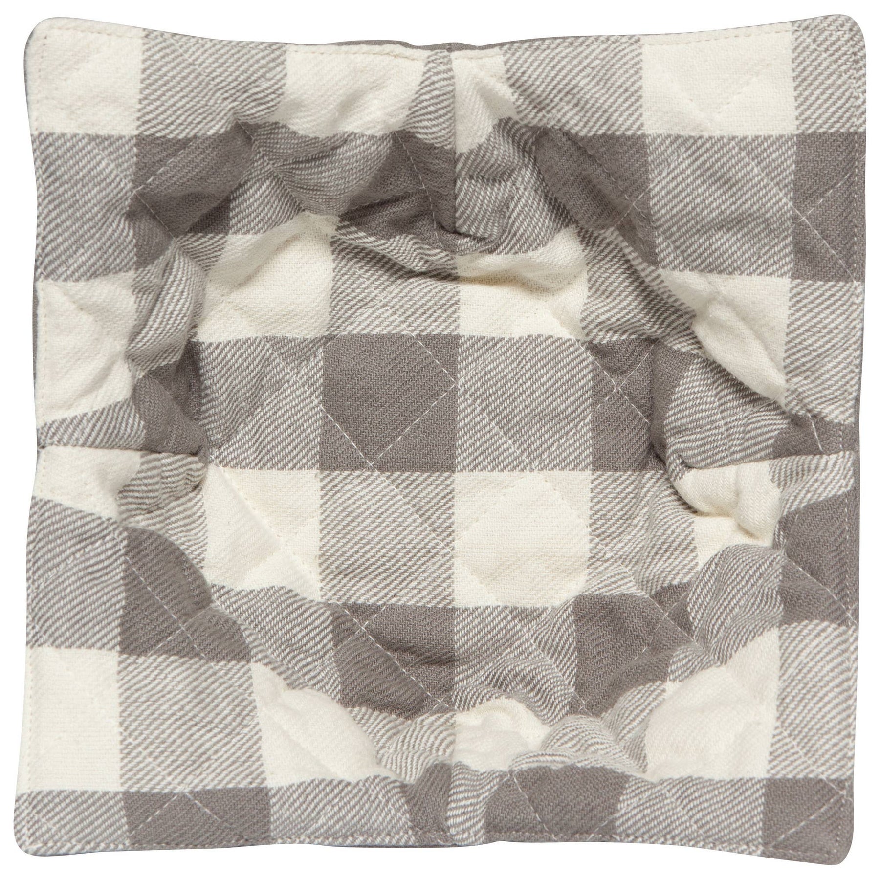Tired of bowls that are too hot to handle out of the microwave? You need a bowl cozy! Place your bowl of soup in this microwave-safe bowl cozy, toss it in the microwave at 50% power and when it's done, pick it up using the cool-to-touch cozy instead of the hot bowl. It keeps your soup warm as well. It's reversible and machine-washable. Do not leave in microwave unattended. Size: W9 x L9 x H2in Material content: 100% cotton, 100% cotton fill. Care instructions: machine wash warm, and lay flat to dry. microwave safe.