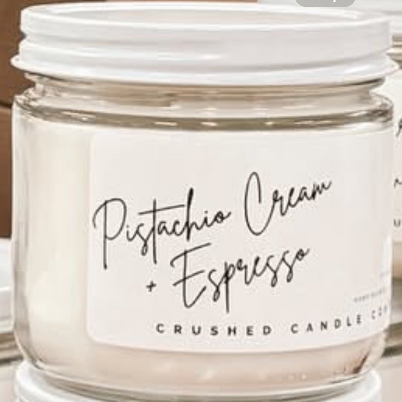 • Pistachio Cream & Espresso Candle // Crushed Candle Co.: Hand-poured in Red Deer candle with pistachio cream and espresso notes.*substitutions for another scent possible due to seasonable availability