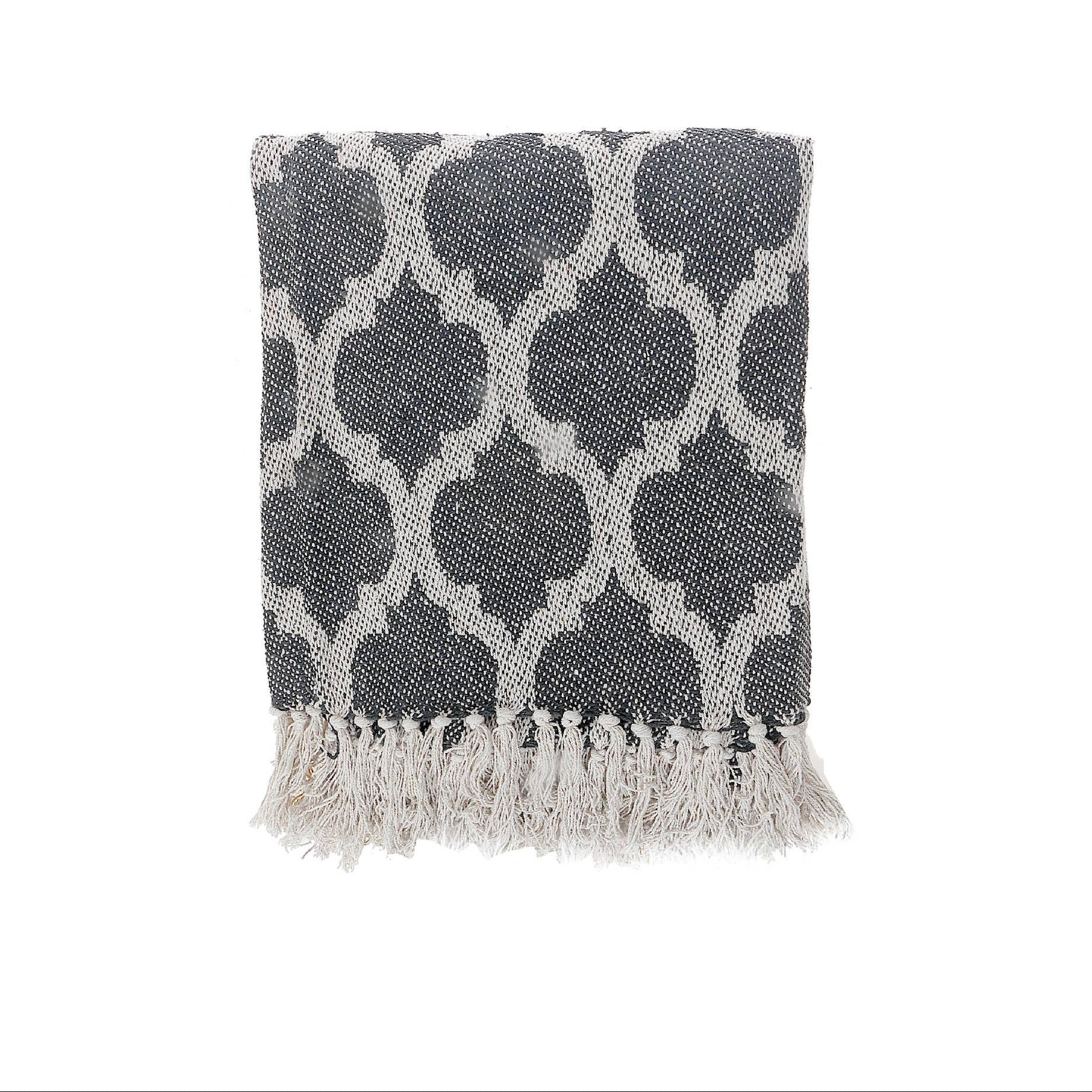 Features: The intricate Moroccan tile pattern in an attractive black hue adds a touch of global charm, making it an inviting and stylish addition to your space. Material: Crafted from 100% cotton for softness and comfort, this throw with fringes is perfect for year-round use.